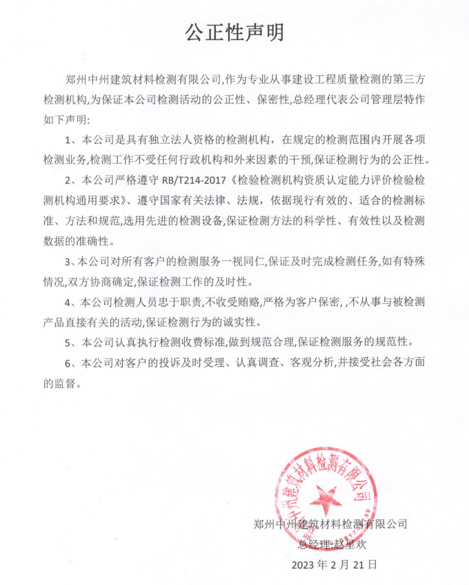 通過河南省質量技術監(jiān)督局計量認證、河南省住房和城鄉建設廳批準,具有獨立法人資格的第三方檢測機構。